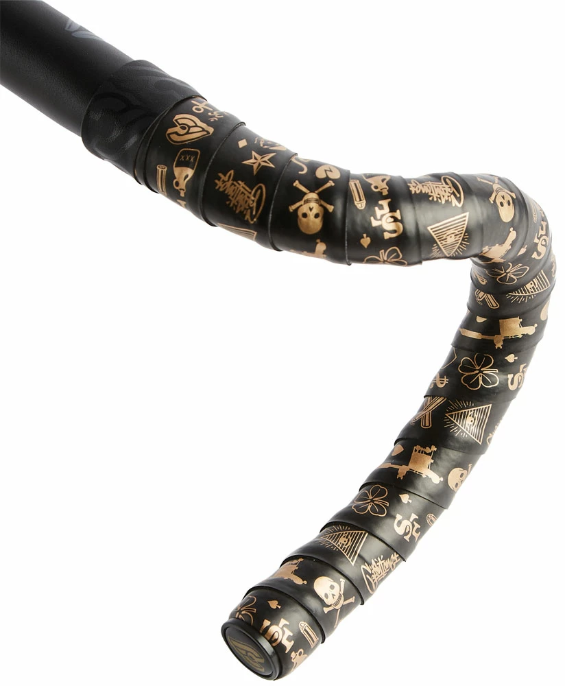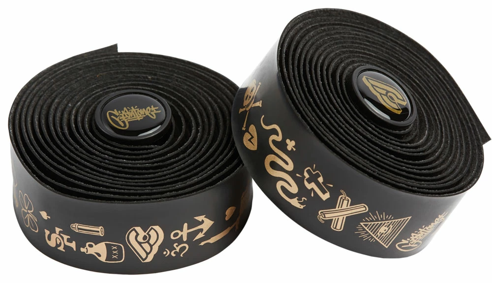 L’artwork doré montre l’interprétation de Mike Giant des symboles de tatouage old-school de la Bay Area autour de San Francisco. Le ruban de guidon Cinelli absorbe les chocs et offre un confort semblable au cuir. Il assure une prise en main ferme et sûre et est très durable.