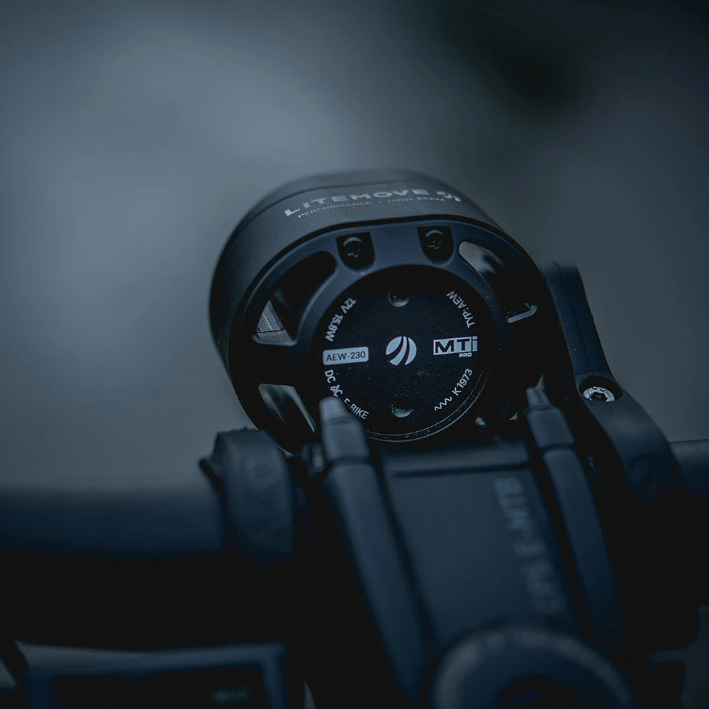 Le phare Litemove AEW-230 doté de la technologie MTi Pro possède un faisceau lumineux de 10 m de large et d’une portée allant jusqu’à 300 m, ce qui améliore considérablement la visibilité vers l’avant. Ce type de projecteur convient mieux aux vététistes, car il offre un éclairage et une visibilité plus larges dans les terrains sombres en forêt ou en montagne. En raison de sa taille, plus petite qu’un jeu de cartes, il se monte facilement sur le guidon sans gêner les autres composants.