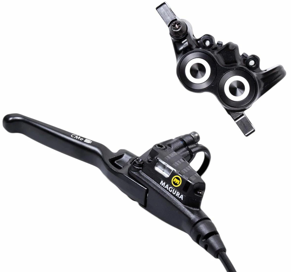Le MAGURA CMe5 est spécialement conçu pour les vélos de transport et les vélos-cargos. Le levier de frein robuste au design Axial offre un look particulièrement discret pour les vélos simples en milieu urbain et un effet de freinage parfaitement dosé. Le grand réservoir avec fenêtre de visualisation facilite la manipulation lors d’une utilisation continue. Pour la puissance de freinage et la stabilité nécessaires, la CMe5 s’appuie sur les étriers de frein à 4 pistons MAGURA MT éprouvés et sur un levier de frein à 4 doigts avec tête sphérique.