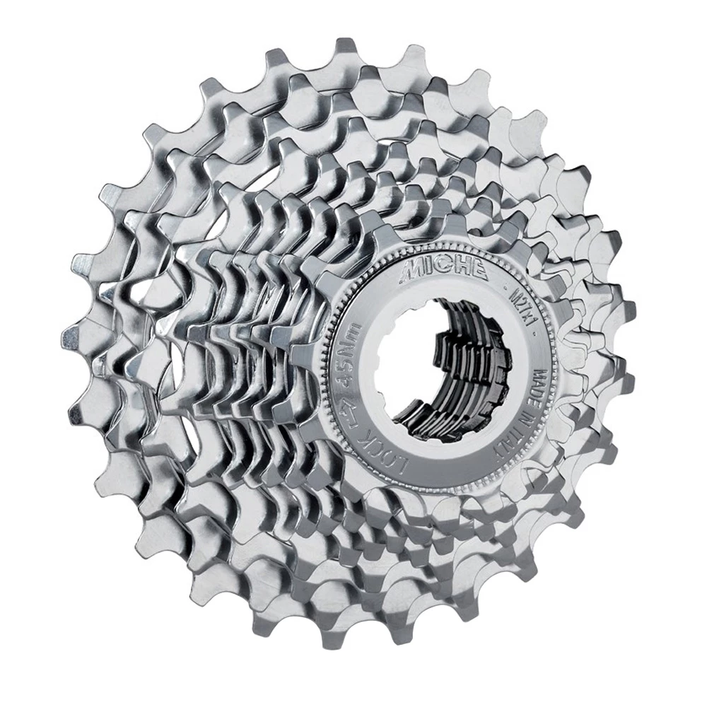 La cassette 10 vitesses de la série Primato du fabricant italien Miche est compatible avec une roue libre Campagnolo ou Miche ainsi qu’avec le système de changement de vitesse Campagnolo 10 vitesses.