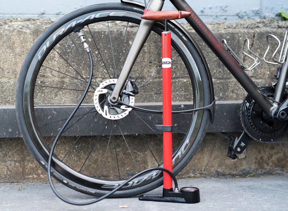 Le compresseur manuel SILCA Pista, avec son pied stable et sa poignée en bois de frêne avec guide-tuyau, a été construit pour durer toute une vie, pas des années.