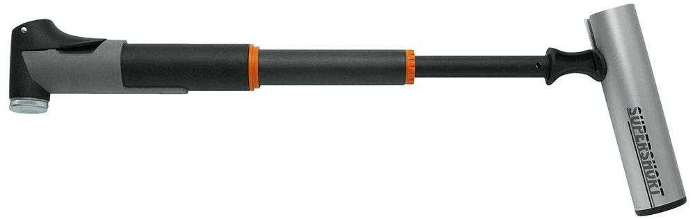 Extrêmement légère et compacte, la mini-pompe SKS SUPERSHORT fait honneur à son nom. Cette pompe de seulement 16,4 cm de long possède une fonction télescopique et, grâce à son tube en aluminium amovible, une poignée en T ergonomique. La tête de valve réversible de la pompe à vélo s’adapte très facilement à tous les types de valves grâce au levier de serrage. Cette pompe à vélo petite mais puissante permet de pomper jusqu’à 6 bars dans les pneus.