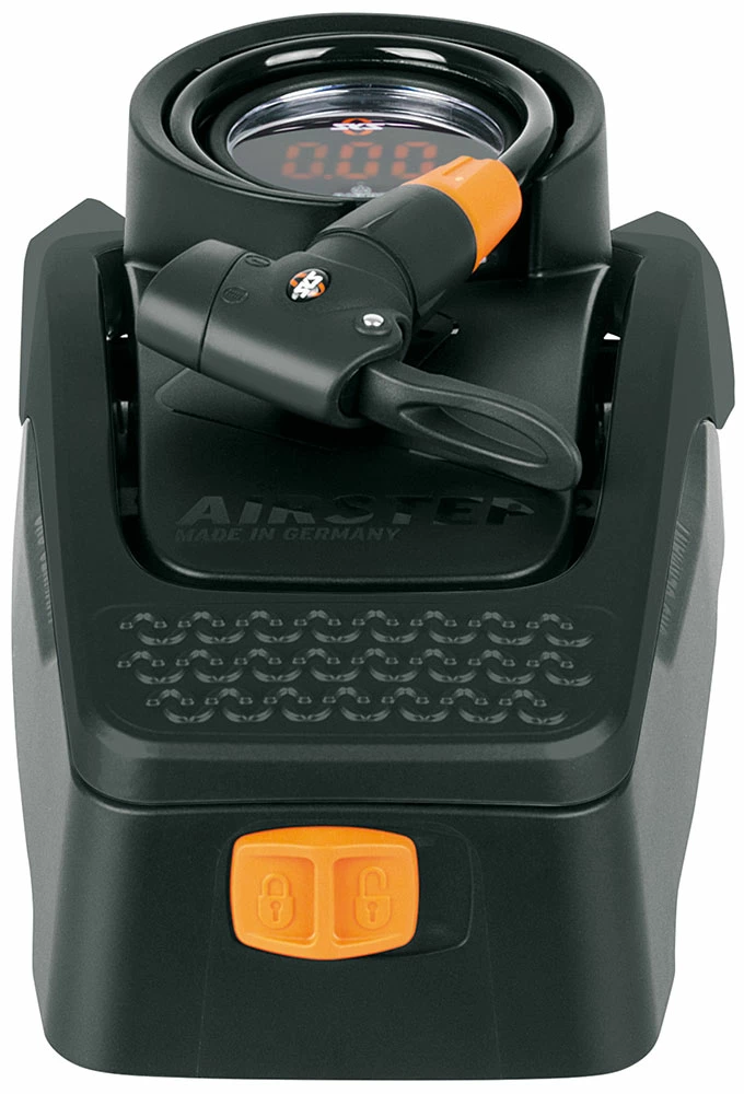 La mise à jour numérique de la pompe à pied AIRSTEP de SKS Germany, qui a fait ses preuves, convainc par son manomètre numérique précis et de haute qualité. L’écran LED noir permet de lire parfaitement la pression en caractères orange vifs. La technologie de capteurs de première classe avec une tolérance d’écart de 1,5 % maximum garantit une grande précision de mesure et assure ainsi un réglage optimal de la pression des pneus.