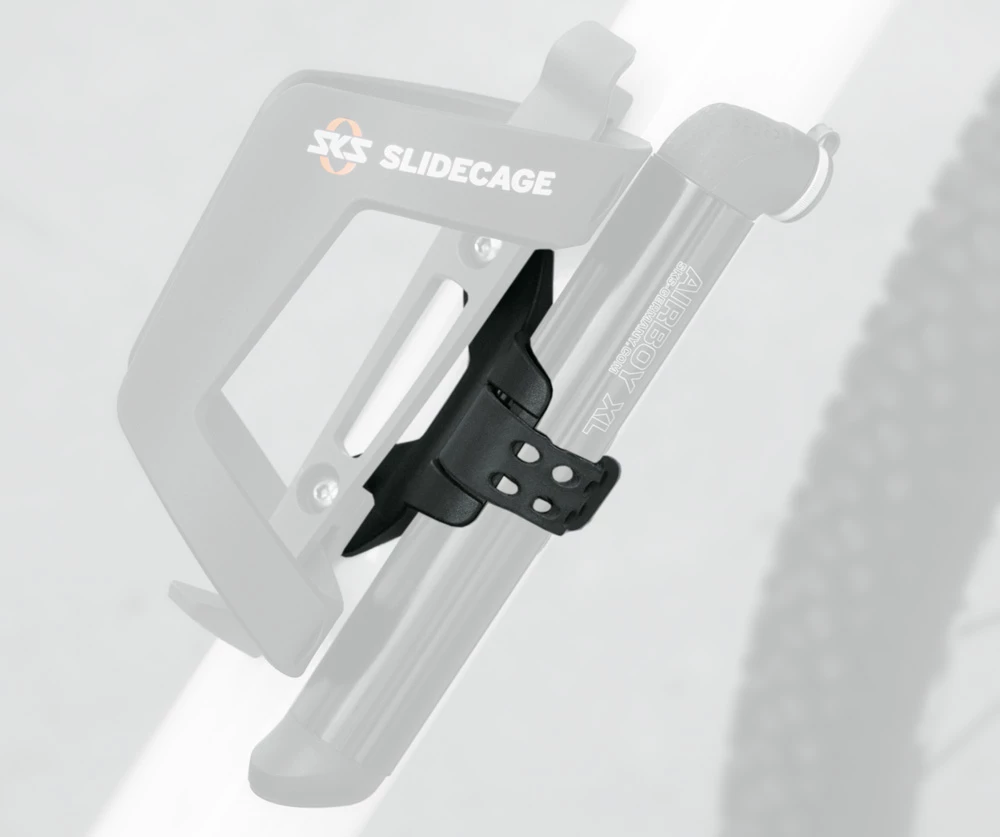 Support universel SKS à fixer sous le porte-bidon pour les pompes d’un diamètre de 19 à 23 mm.
