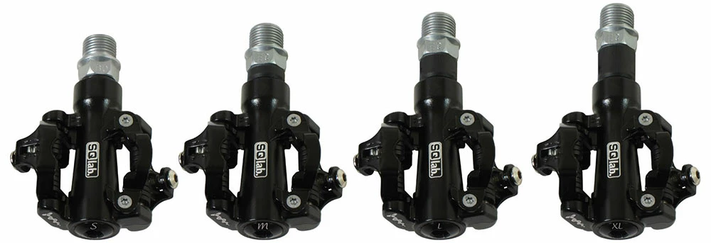 Ces pédales sont rarement utilisées, mais elles ont tout de même leur raison d’être. L’axe court convient aux cyclistes ayant une petite taille de chaussure et qui peuvent rouler avec une position parallèle du pied. Le facteur Q est ainsi plus faible. En particulier en combinaison avec un écart étroit entre les os de l’assise et une largeur de hanche étroite, il est judicieux d’avoir les pieds le plus près possible les uns des autres.
