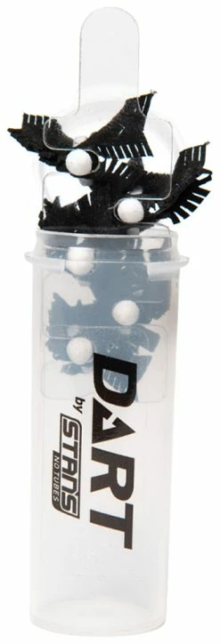 Lors de la conception du DART, Stan’s No Tubes a examiné de près la technologie des bouchons existants et a trouvé de nombreuses façons d’apporter des améliorations majeures. Contrairement aux outils d’insertion larges et pointus et aux bouchons en caoutchouc qui peuvent endommager le ruban de jante et forcer les crevaisons à s’ouvrir encore plus, les DART sont plus sûrs, plus faciles à utiliser et beaucoup plus efficaces pour sceller votre pneu tubeless endommagé.Chaque DART comprend un embout en plastique barbelé qui s’ancre dans la crevaison en toute sécurité tout en étant sans danger pour les jantes, le ruban de jante et les mains. Chaque DART comprend un embout en plastique qui s’ancre dans la crevaison en toute sécurité, sans danger pour les jantes, les rubans de jantes et les mains. La capacité du DART à créer une réaction chimique avec le mastic est sa caractéristique la plus impressionnante, mais le matériau lui-même est également important. En étant plus léger et plus souple que les bouchons de pneus traditionnels, le matériau du DART peut mieux épouser la forme d’une entaille ou d’une perforation. Ce matériau spécial est également beaucoup plus léger que les bouchons de pneus traditionnels et ne peut pas être ressenti en roulant, même sur un pneu de route. Cela signifie qu’un DART n’a pas besoin d’être coupé après avoir été inséré, contrairement aux autres bouchons qui peuvent être accidentellement retirés en roulant s’ils ne sont pas coupés. Avec le DART, la réparation est aussi simple que de localiser la crevaison, d’insérer le DART et de continuer à rouler.