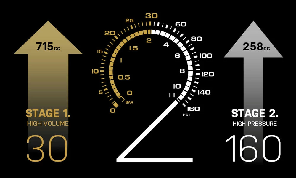 - technologie à 2 étages : permet d’obtenir un grand volume et une pression élevée en un temps record