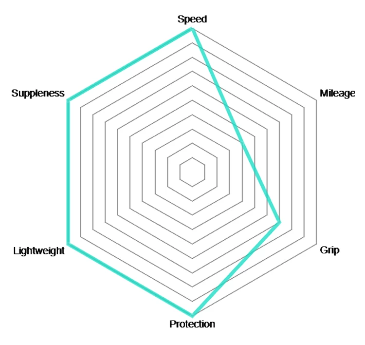 - Carcasse la plus légère et bande de roulement la plus fine pour une vitesse maximale.